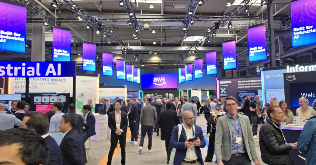 Um möglichst viel mitzunehmen, konzentrierten wir unsere Aufmerksamkeit auf Halle 2 – das Herzstück für Start-ups und Innovationen. Gleich am Eingang wurde unser Interesse von einem Stand geweckt, der einen Produktionsprozess auf Basis von Fischertechnik und SPS-Software zeigte. Im Grunde handelte es sich dabei um einen digitalen 3D-Zwilling, genannt #DigitalTwin, mit dem Produktionsabläufe in Echtzeit visualisiert werden konnten.